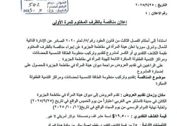 الهيئات هيئة المرأة في مقاطعة الجزيرة تنفّذ مشروع الطاقة الشمسية في مراكز التنمية وحضانات عالم الطفولة نوفمبر 25, 2025