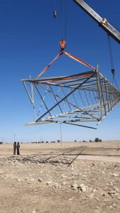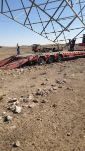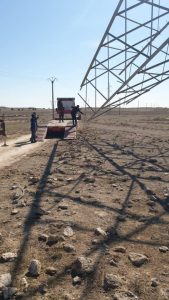 أعمال الصيانة التي تجري من قبل هيئة الطاقة في مقاطعة الجزيرة، على برج 230 مطول المنهار على الخط السادس الرابط بين سد الفرات في مدينة الطبقة والحسكه.