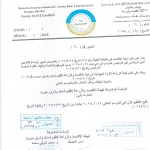 هيئة الاقتصاد والزراعة لإقليم شمال وشرق سوريا تصدر تعميم بفتح التنظيم الزراعي لموسم 2024 – 2025