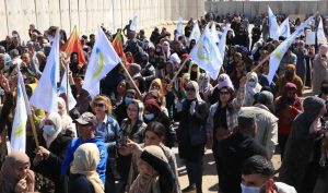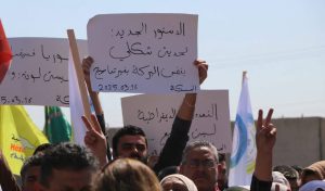 خرج الآلاف من أهالي مدينة الحسكة بكافة مكوناتها، ومؤسسات الإدارة الذاتية والأحزاب السياسية وتنظيمات نسوية بوقفة احتجاجية استنكروا فيها الدستور السوري الجديد ، وذلك أمام قاعدة التحالف الدولي غربي مدينة الحسكة.