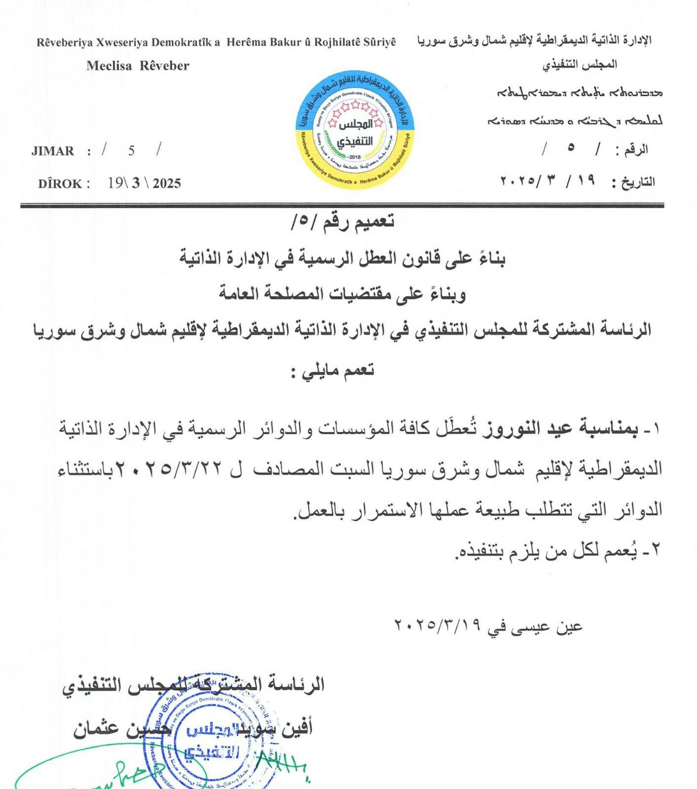 تعميم رقم /٥/ <img class="alignnone size-medium wp-image-11528" src="https://rxd-cezire.net/wp-content/uploads/2025/03/485370271_122101397678805015_2415680732703331968_n-265x300.jpg" alt="" width="265" height="300" />