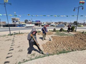 وفي هذا السياق، قام قسم الحدائق والتشجير التابع لبلدية الشعب في مدينة الحسكة بحملة واسعة لتنظيم المنصفات والساحات داخل المدينة.