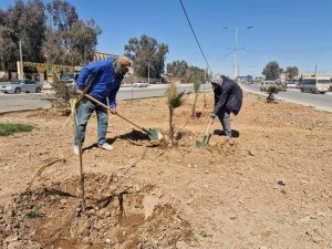 وتضمنت الحملة حراثة التربة باستخدام الجرارات واليد العاملة لتحضير الأرض لاستقبال فصل الربيع، بالإضافة إلى قص وتقليم الأشجار الموجودة في المنصفات.