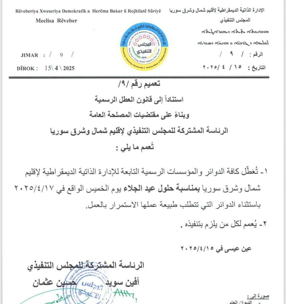 تعميم رقم /٩/ <img class="alignnone size-medium wp-image-12035" src="https://rxd-cezire.net/wp-content/uploads/2025/04/491265904_122117471462805015_4825001362922595307_n-283x300.jpg" alt="" width="283" height="300" />