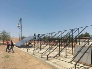 تواصل دائرة المياه في بلدية جل آغاة بمقاطعة الجزيرة تنفيذ مشروع حيوي يستهدف تأمين مياه الشرب لقرية خراب باجار وذلك من خلال تركيب منظومة طاقة سمشية لتشغيل بئر المياه في القرية.