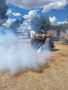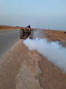 أما في مدينة تل تمر، تواصل بلدية الشعب حملتها لرش المبيدات الحشرية بنوعيها “الضبابي” و”الرذاذي”، وذلك بعد ارتفاع درجات الحرارة وانتشار الحشرات الناقلة للأمراض، مثل اللشمانيا.