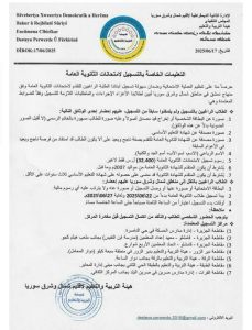 التعليمات الخاصة بالتسجيل لامتحانات الثانوية العامة وفق منهاج دمشق <img class="alignnone size-medium wp-image-13568" src="https://rxd-cezire.net/wp-content/uploads/2025/06/508869928_122136470978805015_4384373334520362762_n-229x300.jpg" alt="" width="229" height="300" />