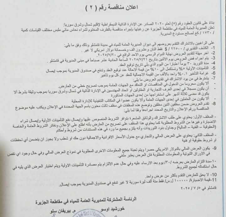 #اعلان_مناقصة رقم 2 <img class="alignnone size-medium wp-image-14261" src="https://rxd-cezire.net/wp-content/uploads/2025/07/516318437_122139726680805015_551218184539079862_n-300x288.jpg" alt="" width="300" height="288" />