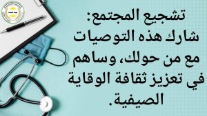 - شارك هذه التوصيات مع من حولك، وساهم في تعزيز ثقافة الوقاية الصيفية.