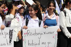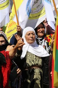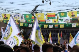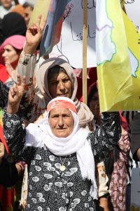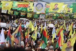 أهالي مقاطعة الجزيرة يشاركون في التجمع الجماهيري الذي نُظّم اليوم في مدينة قامشلو, للتعبير عن دعمهم للإدارة الذاتية وقسد وللتأكيد على حماية مكتسبات ثورة 19 تموز.