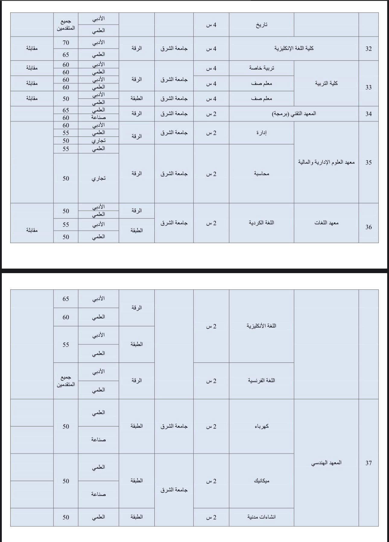 <div class="xdj266r x14z9mp xat24cr x1lziwak x1vvkbs x126k92a"> <div dir="auto">يعلن مجلس الجامعات في إقليم شمال وشرق سوريا عن فتح باب المفاضلة للعام الدراسي ٢٠٢٥-٢٠٢٦.</div> <div dir="auto">للاطلاع على الحدود الدنيا للأقسام ودرجات القبول، يرجى زيارة الرابط أدناه:</div> </div> <div class="x14z9mp xat24cr x1lziwak x1vvkbs xtlvy1s x126k92a"> <div dir="auto"><span class="html-span xdj266r x14z9mp xat24cr x1lziwak xexx8yu xyri2b x18d9i69 x1c1uobl x1hl2dhg x16tdsg8 x1vvkbs"><a class="x1i10hfl xjbqb8w x1ejq31n x18oe1m7 x1sy0etr xstzfhl x972fbf x10w94by x1qhh985 x14e42zd x9f619 x1ypdohk xt0psk2 x3ct3a4 xdj266r x14z9mp xat24cr x1lziwak xexx8yu xyri2b x18d9i69 x1c1uobl x16tdsg8 x1hl2dhg xggy1nq x1a2a7pz xkrqix3 x1sur9pj x1fey0fg x1s688f" tabindex="0" role="link" href="https://university-acceptance.acornassociated.org/?fbclid=IwZXh0bgNhZW0CMTAAYnJpZBExNld1RjJ5c1JFY0tzbXhoSwEeFn6EBjGSwo0Ep6wpMoelwpMfEEOJUGFzylA_mNGMQFc7nbVdvDsLADk4HVM_aem_ZzztKcMMDm_P_wCBGeLl7w" target="_blank" rel="nofollow noopener noreferrer">https://university-acceptance.acornassociated.org/</a></span></div> <div dir="auto"><img class="alignnone size-medium wp-image-17187" src="https://rxd-cezire.net/wp-content/uploads/2025/10/558686043_122152827380805015_7348499015483926606_n-1-215x300.jpg" alt="" width="215" height="300" /> <img class="alignnone size-medium wp-image-17188" src="https://rxd-cezire.net/wp-content/uploads/2025/10/556872026_122152827512805015_5731471001726056045_n-1-217x300.jpg" alt="" width="217" height="300" /> <img class="alignnone size-medium wp-image-17189" src="https://rxd-cezire.net/wp-content/uploads/2025/10/557627556_122152827494805015_8577879813410834472_n-1-170x300.jpg" alt="" width="170" height="300" /> <img class="alignnone size-medium wp-image-17190" src="https://rxd-cezire.net/wp-content/uploads/2025/10/557692316_122152827584805015_5382495946374548624_n-1-215x300.jpg" alt="" width="215" height="300" /></div> </div>