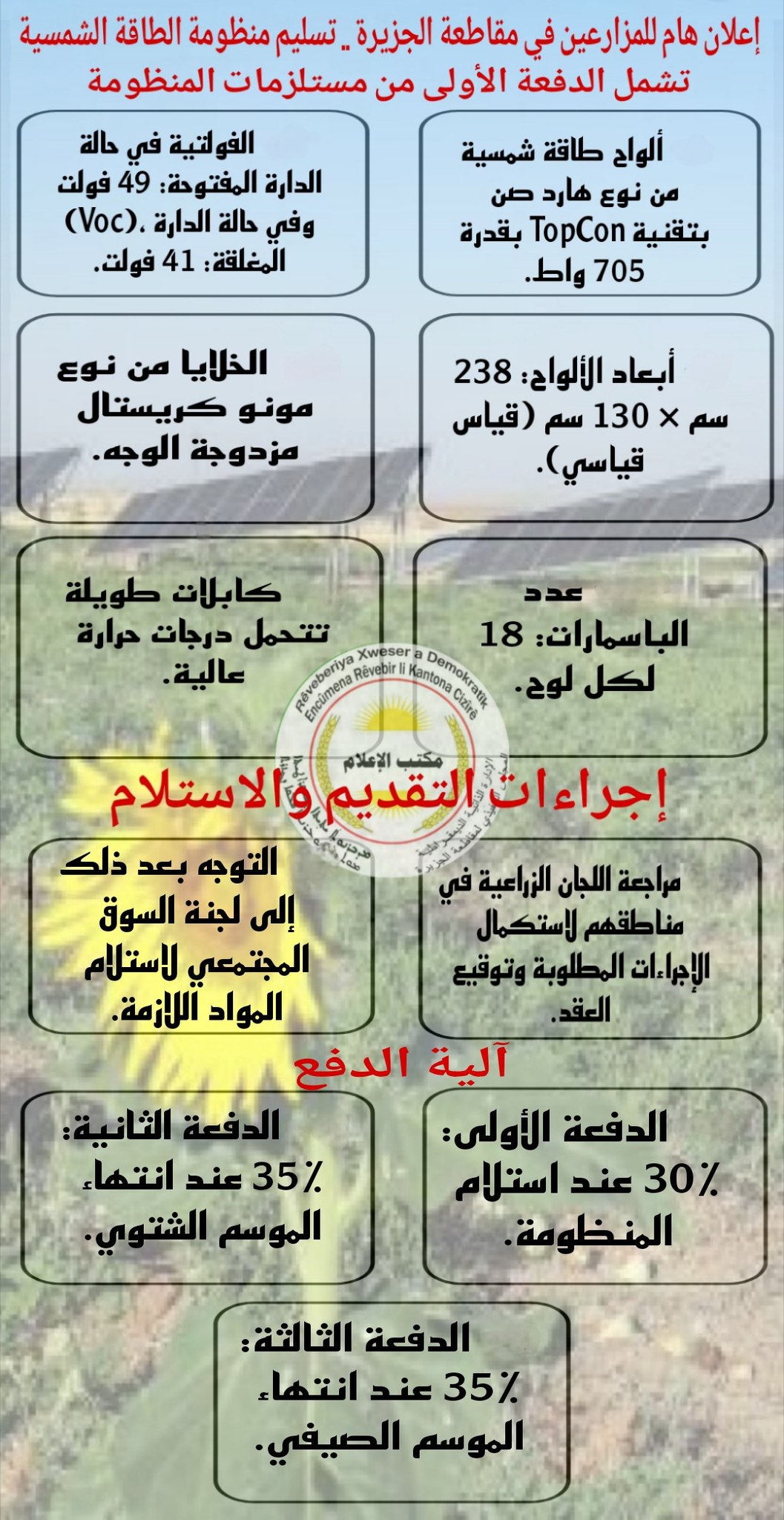 إعلان هام للمزارعين في مقاطعة الجزيرة .. تسليم منظومة الطاقة الشمسية <img class="alignnone size-medium wp-image-17450" src="https://rxd-cezire.net/wp-content/uploads/2025/10/564560566_122154259916805015_2221944751011458321_n-155x300.jpg" alt="" width="155" height="300" />