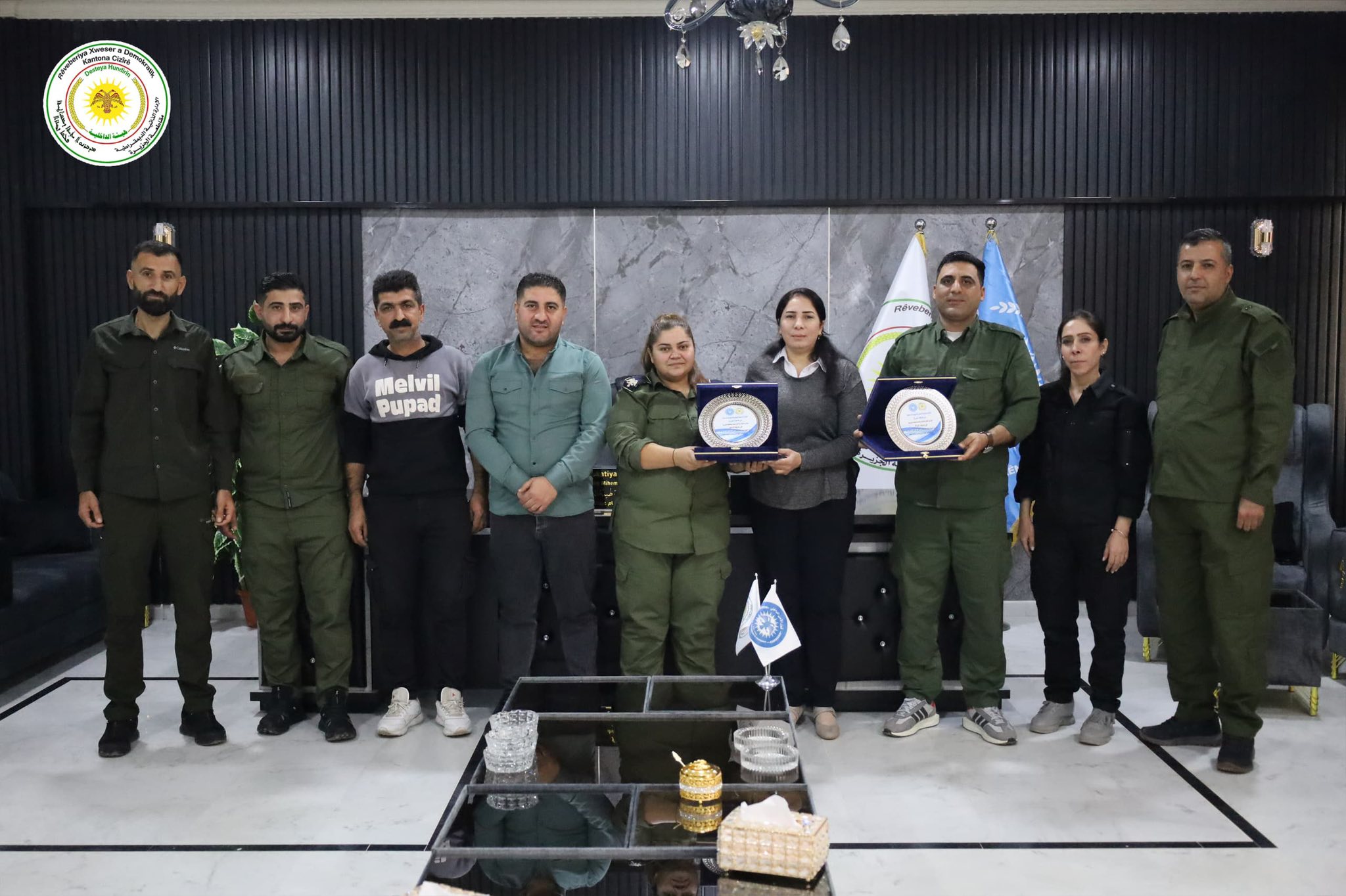 كرمت هيئة الداخلية في مقاطعة الجزيرة اليوم مكتب مكافحة الجريمة في قامشلو ومكتب مكافحة الجريمة في ديرك تقديراً لجهودهما الكبيرة خلال الفترة الماضية في أداء مهامهما بدقة ومسؤولية عالية ومساهمتهما الفاعلة في تعزيز الأمن والاستقرار ضمن المنطقة.