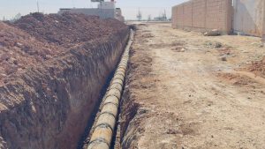 باشرت بلدية الشعب في قامشلو – العمل في مشروع الصرف الصحي في مفارز هيمو – كومين الشهيد أورهان، بطول 600/650 متر مكعب.