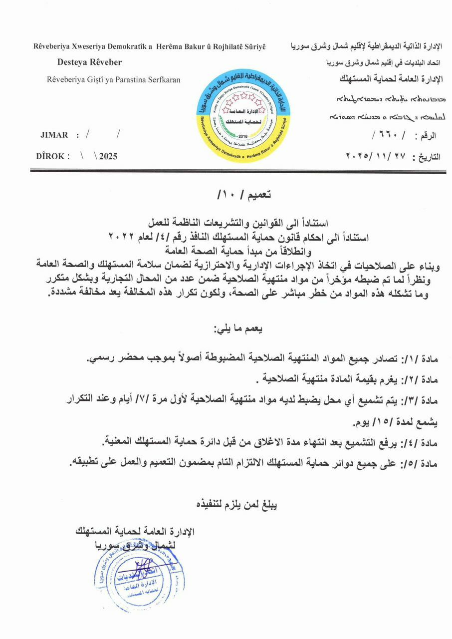 <span class="html-span xdj266r x14z9mp xat24cr x1lziwak xexx8yu xyri2b x18d9i69 x1c1uobl x1hl2dhg x16tdsg8 x1vvkbs"><a class="x1i10hfl xjbqb8w x1ejq31n x18oe1m7 x1sy0etr xstzfhl x972fbf x10w94by x1qhh985 x14e42zd x9f619 x1ypdohk xt0psk2 x3ct3a4 xdj266r x14z9mp xat24cr x1lziwak xexx8yu xyri2b x18d9i69 x1c1uobl x16tdsg8 x1hl2dhg xggy1nq x1a2a7pz xkrqix3 x1sur9pj x1fey0fg x1s688f" tabindex="0" role="link" href="https://www.facebook.com/hashtag/%D8%AA%D8%B9%D9%85%D9%8A%D9%85?__eep__=6&__cft__[0]=AZXJOb4RlIXMsT7k1CjeZlDjlApYg4J4-WDVkFvZy1LPtwFN-Grc8kTAbuzeQiTYaeHkGB4fCA-69TEE42t0j6mHk6ygzpiOv_2kTVdNSVuM9Is5jw_eeZtU8bt5ZgCwBO_Af23Pb3AdjuzRzwd82si6VCj6hUA-9mFUyFNOLRbXf-1rryQRZKLDZfmNizKnJy9yCxDkpp91xixbMrCYqVgZ&__tn__=*NK-R">#تعميم</a></span> لاتخاذ إجراءات احترازية لضمان سلامة المستهلك والصحة العامة <img class="alignnone size-medium wp-image-18945" src="https://rxd-cezire.net/wp-content/uploads/2025/11/589173229_122159477450805015_6560754857792788939_n-212x300.jpg" alt="" width="212" height="300" />