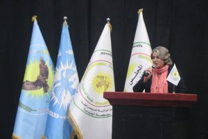 وقدمت مستشارة المجلس التنفيذي جيان ديرك عرضاً سياسياً حول الوضع الراهن في شمال وشرق سوريا مشيرة إلى أن المشهد السياسي يشهد فوضى وتناقضات نتيجة سعي القوى العظمى والدول لتمرير سياساتها وفق مصالحها وأيديولوجياتها ما ينعكس بصورة مباشرة على واقع الشعوب.