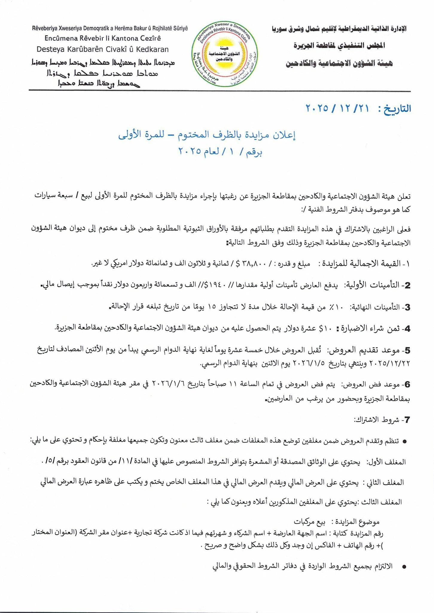 <a class="x1i10hfl xjbqb8w x1ejq31n x18oe1m7 x1sy0etr xstzfhl x972fbf x10w94by x1qhh985 x14e42zd x9f619 x1ypdohk xt0psk2 x3ct3a4 xdj266r x14z9mp xat24cr x1lziwak xexx8yu xyri2b x18d9i69 x1c1uobl x16tdsg8 x1hl2dhg xggy1nq x1a2a7pz xkrqix3 x1sur9pj x1fey0fg x1s688f" tabindex="0" role="link" href="https://www.facebook.com/hashtag/%D8%A7%D8%B9%D9%84%D8%A7%D9%86_%D9%85%D8%B2%D8%A7%D9%8A%D8%AF%D8%A9?__eep__=6&__cft__[0]=AZa__dIx0mSWBOXUnBq1-b8JO7KWDjOY0IFTmSRnqXWqf04JxTXNtOBvW9nKwPMj7Nwu_3TPm6vUKhUzVgCKNRlPIREEJLmYGibUGoLQRMMfGl-gCggV2XKkmKRGPQwS8gtZs4g2gbwu1Bj0dKNaFvo4a8vOgdsCefKyxi9xTjjPrTpvxDev_nl0FfieRAMMPGW5K8-9nfqkZd9n9_F-28sj&__tn__=*NK-R">#اعلان_مزايدة</a> <img class="alignnone size-medium wp-image-20130" src="https://rxd-cezire.net/wp-content/uploads/2025/12/603069584_122162432318805015_1395994494355399106_n-213x300.jpg" alt="" width="213" height="300" /> <img class="alignnone size-medium wp-image-20131" src="https://rxd-cezire.net/wp-content/uploads/2025/12/604528773_122162432360805015_7219100175106921269_n-213x300.jpg" alt="" width="213" height="300" />