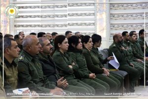 وبدأ الاجتماع بالوقوف دقيقة صمت إجلالاً لأرواح الشهداء تلاها قراءة التقرير السنوي باللغتين الكردية والعربية ثم عرض فيلم سنفزيوني تناول أبرز محطات العمل الأمني خلال العام المنصرم مستعرضاً الجهود المبذولة في مختلف المجالات الأمنية.