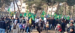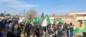 خرج العشرات من أهالي بلدة تل كوجر وبمختلف مكوناتها بمسيرة داعمة لحيي الشيخ مقصود والأشرفية، وسط ترديد الشعارات التي تحي مقاومة الأهالي وتندد بالهجمات التي تشنها قوات الحكومة المؤقتة.