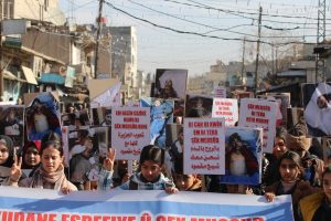 خرج مئات من أهالي مدينة عامودا وريفها في مقاطعة الجزيرة في مسيرة جماهيرية حاشدة، عبروا خلالها عن تضامنهم مع مقاومة حيي الشيخ مقصود والأشرفية، واستنكارهم لقصف قوات الحكومة المؤقتة للحيين وما رافقه من استهداف مباشر للمدنيين.