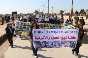 خرج المئات من أهالي مدينة تل براك في مقاطعة الجزيرة في مسيرة جماهيرية حاشدة، عبروا خلالها عن تضامنهم مع مقاومة حيي الشيخ مقصود والأشرفية، واستنكارهم لقصف قوات الحكومة المؤقتة للحيين وما رافقه من استهداف مباشر للمدنيين.