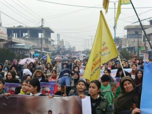 خرج الآلاف من أهالي بلدة تل كوجر ونواحيها في مسيرة جماهيرية حاشدة، دعماً لقوات سوريا الديمقراطية وتنديداً بالجرائم التي ارتكبتها قوات الحكومة المؤقتة في حيي الشيخ مقصود والأشرفية.