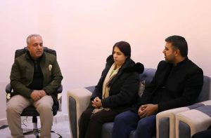 زار وفد من الإدارة الذاتية الديمقراطية لمقاطعة الجزيرة وحركة المجتمع الديمقراطي (TEV-DEM)، اليوم، فريق مؤسسة بارزاني الخيرية العامل في مقاطعة الجزيرة، في إطار تقديم الشكر وتنسيق الجهود المتعلقة بالمساعدات الإنسانية المقدّمة للنازحين القادمين من حيي الأشرفية والشيخ مقصود.
