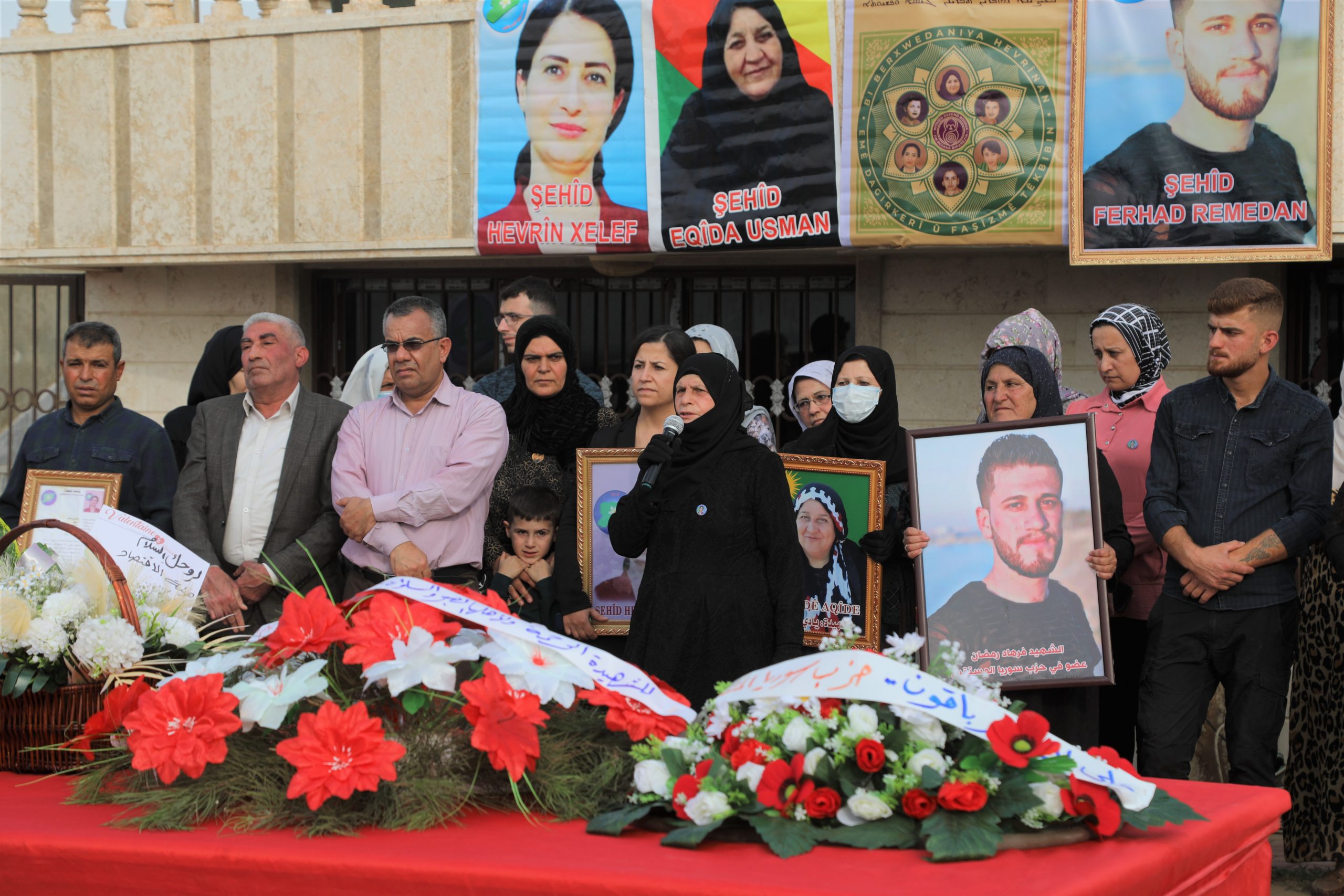 باسم عائلتي الشهيدة هفرين خلف والشهيد فرهاد رمضان وبشخصهما نستذكر وننحني لجميع شهداء الحرية إجلالاً .