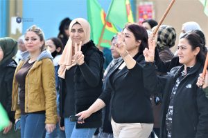 ومن هنا ننادي جميع نساء العالم في روج افا خاصة لينضموا لهذا التيار والحركة ويؤسسوا قاعدة متينة لنرفع سويا صوتنا ونصنع القوة بحماس لتكون مقاومتنا صاعدة.