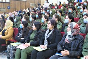 عُقد اليوم الاثنين المصادف في 13/12/2021 الاجتماع السنوي الخاص بالمرأة لهيئة الداخلية في إقليم الجزيرة لعام 2021م بحضور إداريات اسايش المرأة وإداريات الهيئات والمكاتب في إقليم الجزيرة بكافة أقسامها بالإضافة الى إداريات المرأة ومؤتمر ستار في شمال وشرق سوريا .