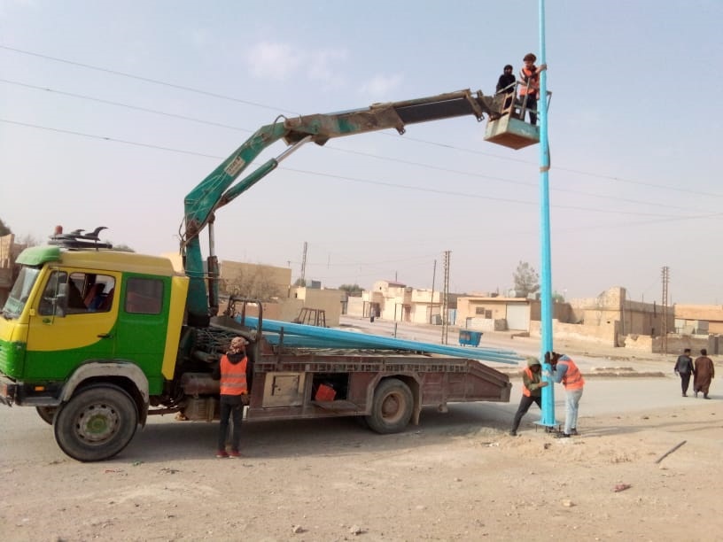 لتحسين الظروف المعيشية والأمنية للأهالي ولتحقيق الاستقرار في مناطق الجنوبية للحسكة ، هيئة الإدارة المحلية والبيئة في إقليم الجزيرة وبالتنسيق مع هيئتي الداخلية والطاقة مستمرة بمشروع إنارة في الشدادي AS2071.