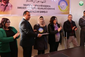 اقامت اكاديمية الشهيدة روكن للمجتمع الديمقراطي في الحسكة حفل تخرج دورة الشهيد هوزان قامشلو للتدريب والتأهيل ورفع كفاءة العاملين في جهاز الإداري في الإدارة الذاتية وهي الدورة الاولى من نوعها على مستوى شمال وشرق سوريا.