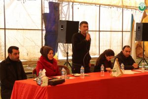 بعد ذلك تحدث محمود محمد نائب الرئاسة المشتركة لهيئة الاقتصاد والزراعة في إقليم الجزيرة ” قائلاً: نعيش اليوم في سوريا بحصار عام وخاصة مناطق شمال وشرق سوريا ، قانون قصير وتأثيرات و انخفاض الليرة مقابل الدولار كل هذه الظروف أثرت على منطقتنا لأننا جزء من سوريا .