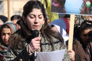 من جانبها استنكرت الإدارية في مؤتمر ستار بمدينة الحسكة شريفة احمد الهجمات التركية على مناطق شمال وشرق سوريا ، وقالت في كلمتها ” ان اهالينا الصامدون في عفرين يتعرضون يومياً لشتى أنواع التعذيب على يد المحتل ومرتزقته ، فتتعرض النسوة للاغتصاب والسجن ، إلى جانب التغيير الديموغرافي الحاصل في عفرين وذلك على مرأى ومسمع العالم كله .