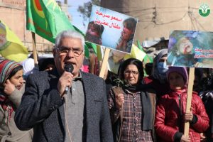 من ثم القى الإداري في حزب الاتحاد الديمقراطي حسين بري كلمة قال فيها ” في مثل هذا اليوم شنت طائرات المحتل التركي وقواته البرية مدعومة بمرتزقته عدوانهم البربري على منطقة عفرين وذلك للقضاء على المشروع الديمقراطي ، وكسر إرادة شعوب المنطقة “