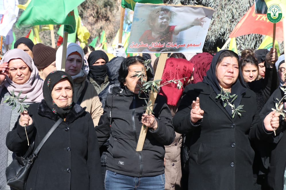 خرج اليوم، الآلاف من مكونات مقاطعة الحسكة، في تظاهرات متفرقة في مدن ونواحي المقاطعة ،” الحسكة، الدرباسية، تل تمر، الهول، الشدادي، مخيم واشو كاني” بمناسبة مرور اربع سنوات على احتلال مدينة عفرين من قبل الاحتلال التركي ومرتزقته مطالبين المجتمع الدولي بإخراج الاحتلال منها.