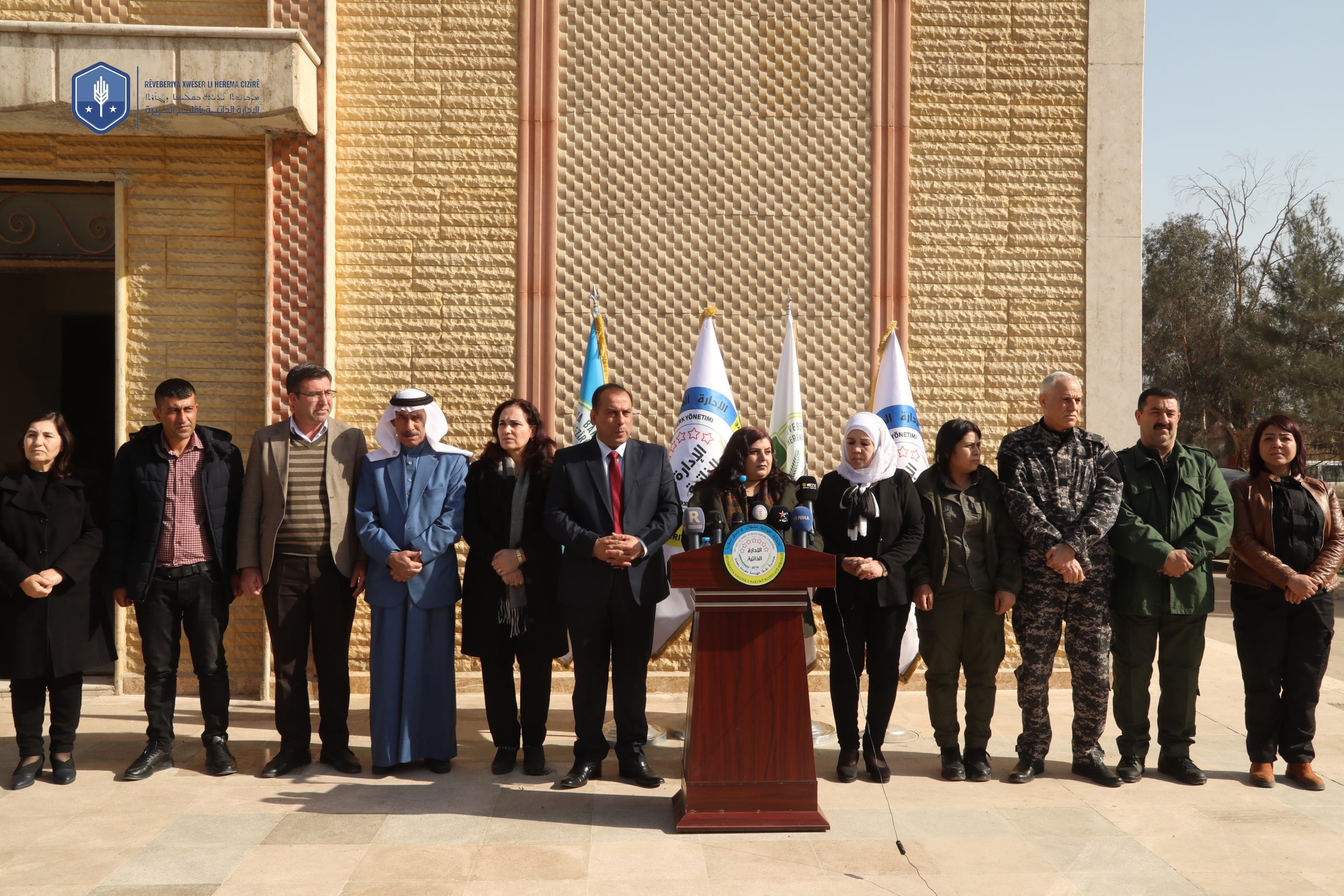 تم قراءة بيان بخصوص مجريات الأحداث وأخر التطورات التي حدثت في سجن غويران بالحسكة والهجوم الإرهابي من قبل مرتزقة داعش بحضور الرئاسة المشتركة للمجلس التنفيذي في شمال وشرق سوريا ،الرئاسة المشتركة للمجلس التنفيذي في إقليم الجزيرة ،الرئاسة المشتركة لهيئة الداخلية في شمال وشرق سوريا ، الرئاسة المشتركة لهيئة الداخلية في إقليم الجزيرة ،الرئيس المشترك لمكتب المنظمات في شمال وشرق سوريا ، والرئاسة المشتركة لمجلس مقاطعة الحسكة وذلك في مبنى مقاطعة الحسكة وجاء في النص ما يلي :