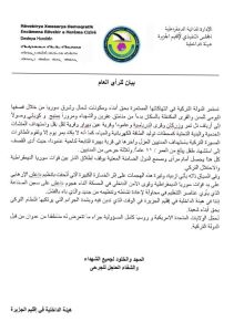 إننا في هيئة الداخلية في إقليم الجزيرة في الوقت الذي ندين فيه وبشدة الجرائم التي يرتكبها النظام التركي بحق أبناء شعبنا.