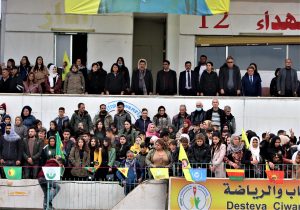 تحت شعار ” بروح مقاومة مطرقة الشعوب نحيي الذكرى الثامنة عشر لانتفاضة 12 آذار ” أحيت الإدارة الذاتية في إقليم الجزيرة صباح اليوم السبت المصادف في ١٢ /٣ /٢٠٢٢ على أرض ملعب 12 آذار الذكرى السنوية الثامنة عشر لانتفاضة قامشلو بكرنفال جماهيري غفير ،وبحضور الرئيس المشترك للمجلس التنفيذي لإقليم الجزيرة السيد ” طلعت يونس ” ومستشارة الإدارة الذاتية في إقليم الجزيرة السيدة ” جيهان خليل ” بالإضافة الى رؤساء المكاتب والهيئات في إقليم الجزيرة كما حضر الكرنفال وفد من شمال وشرق سوريا بالإضافة الى المؤسسات المدنية والعسكرية في إقليم الجزيرة.