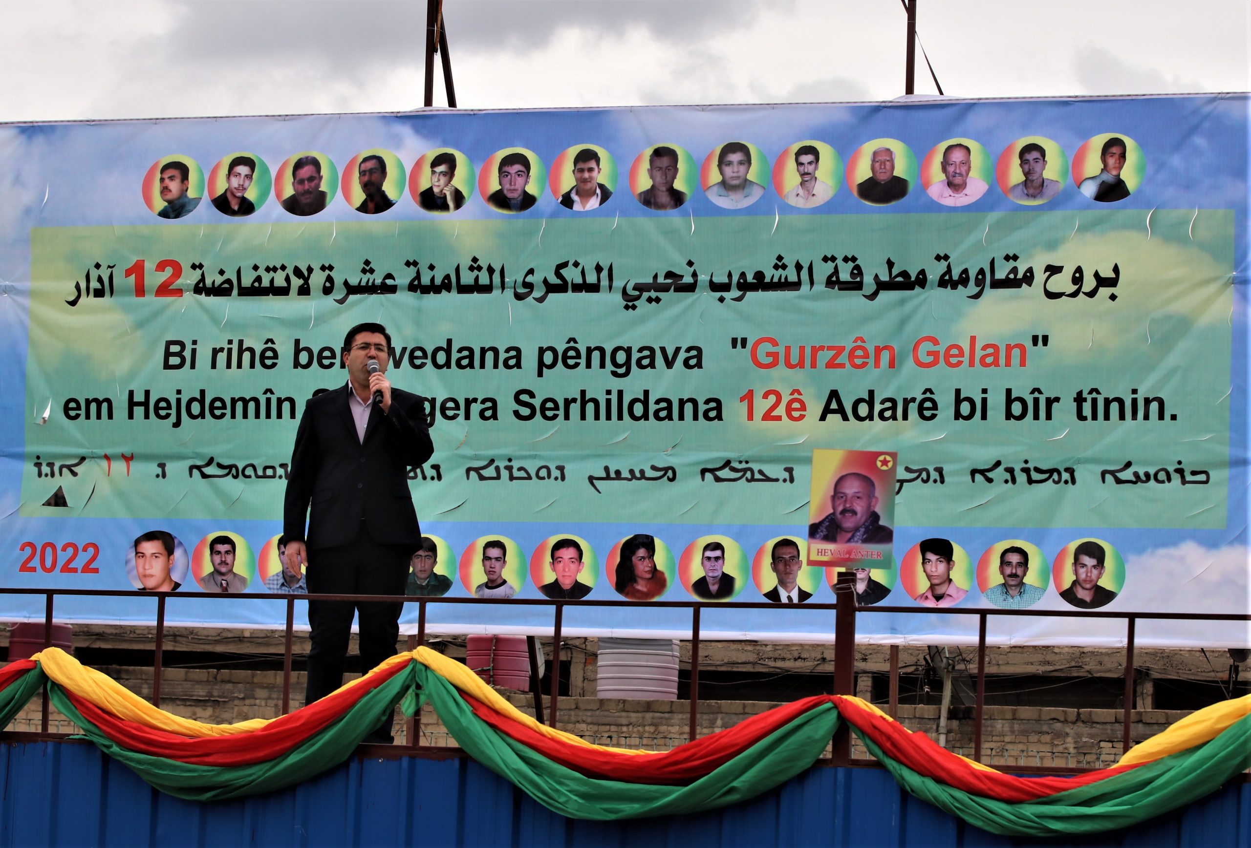 وتابع ” يونس ” روح 12 آذار موجودة في جميع الساحات والمنعطفات في ثورتنا ،سوريا ديمقراطية تعددية لا مركزية لا مكان لها للاستبداد ،لا مكان لها للاضطهاد ،لا مكان لها للتفرقة ،يسودها الحرية والديمقراطية وأخوة الشعوب