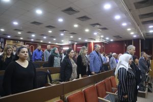 ترأس الاجتماع أعضاء لجنة صياغة العقد الاجتماعي المصغرة السيدة فوزة يوسف والسيدة إليزابيت كورية والسيد طلعت يونس السيد حكمت حبيب وللسيد طلال محمد بدء الاجتماع بالوقوف دقيقة صمت اجلالاً لأرواح الشهداء ومن ثم تمت المباشرة بقراءة مسودة العقد الاجتماعي من قبل ديوان الاجتماع.