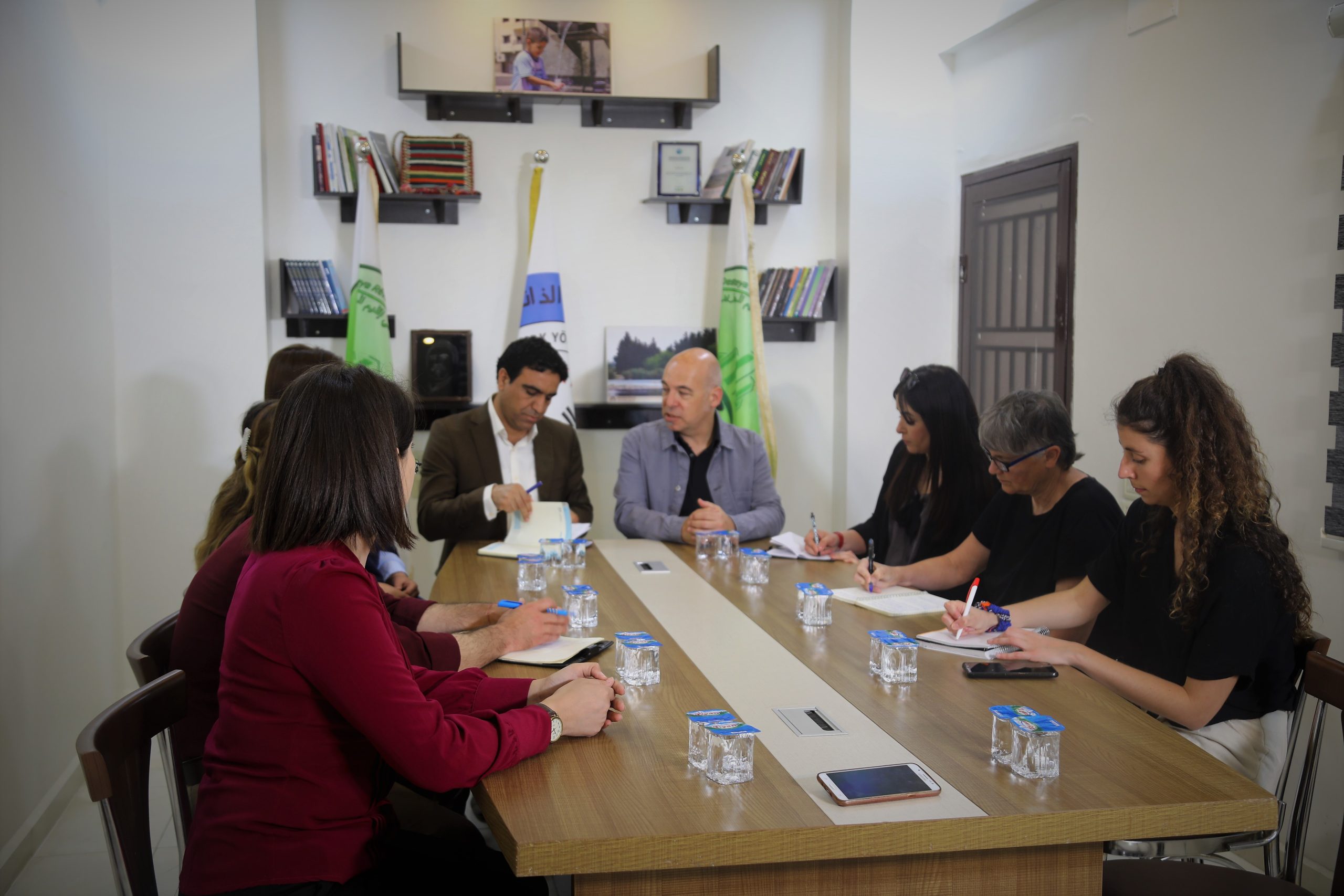 في إطار الزيارات الخارجية لمناطق شمال وشرق سوريا بهدف الاطلاع على آخر المستجدات في المنطقة والعمل بشكل جدي لبناء علاقات تسعى لتطوير الواقع الخدمي في شمال وشرق سوريا ، قام صباح اليوم الخميس 12/5/2022 وفداً من إقليم كتالونية ضمن سلسلة الزيارات المخطط لها من قبل الصندوق الكتالوني بزيارة هيئة الإدارة المحلية والبيئة في إقليم الجزيرة في مدينة قامشلو ، وجاءت هذه الزيارة بعد الاعتراف الرسمي بالإدارة الذاتية لشمال وشرق سوريا من البرلمان الكتالوني واستجابة للقرار الذي يحث المؤسسات الكتالونية على إقامة علاقات مؤسسية مع الإدارة الذاتية وتعزيز شبكة تضامن للمشاركة في إعادة إعمار المنطقة السورية والتوأمة مع مواطنيها
