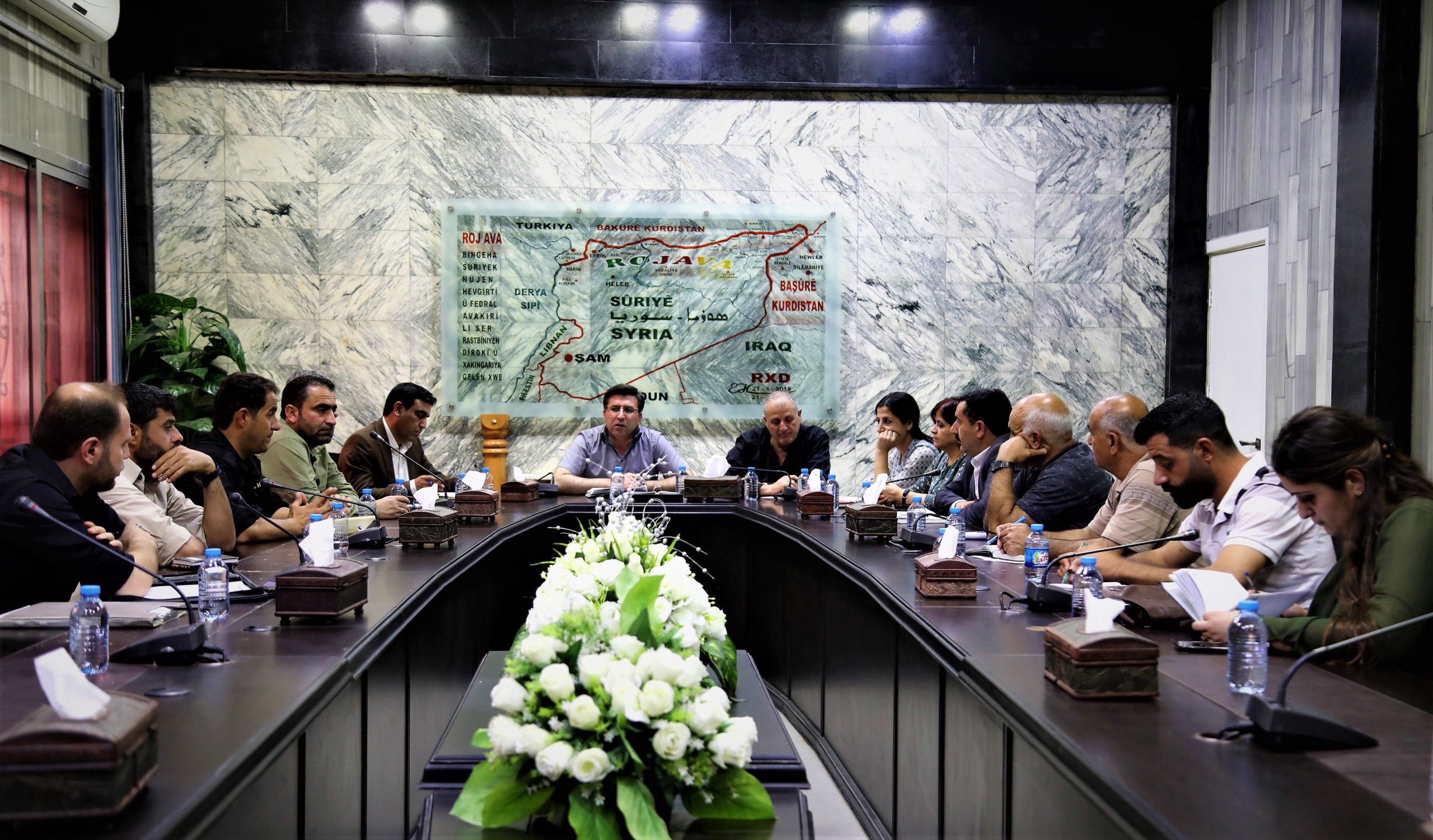 بدء الاجتماع بالوقوف دقيقة صمت إجلالاً لأرواح الشهداء ومن ثم قراءة جدول الاجتماع من قِبل الرئيس المشترك للمجلس التنفيذي السيد ” طلعت يونس ” ومدى تنفيذ مخرجات الاجتماعات السابقة التي عُقدت كما قُرأت تقارير اللجان والانتقال الى المرحلة الأخيرة وهي مرحلة العمل الميداني ومراقبة المحصول وحالة الطوارئ والاستنفار.
