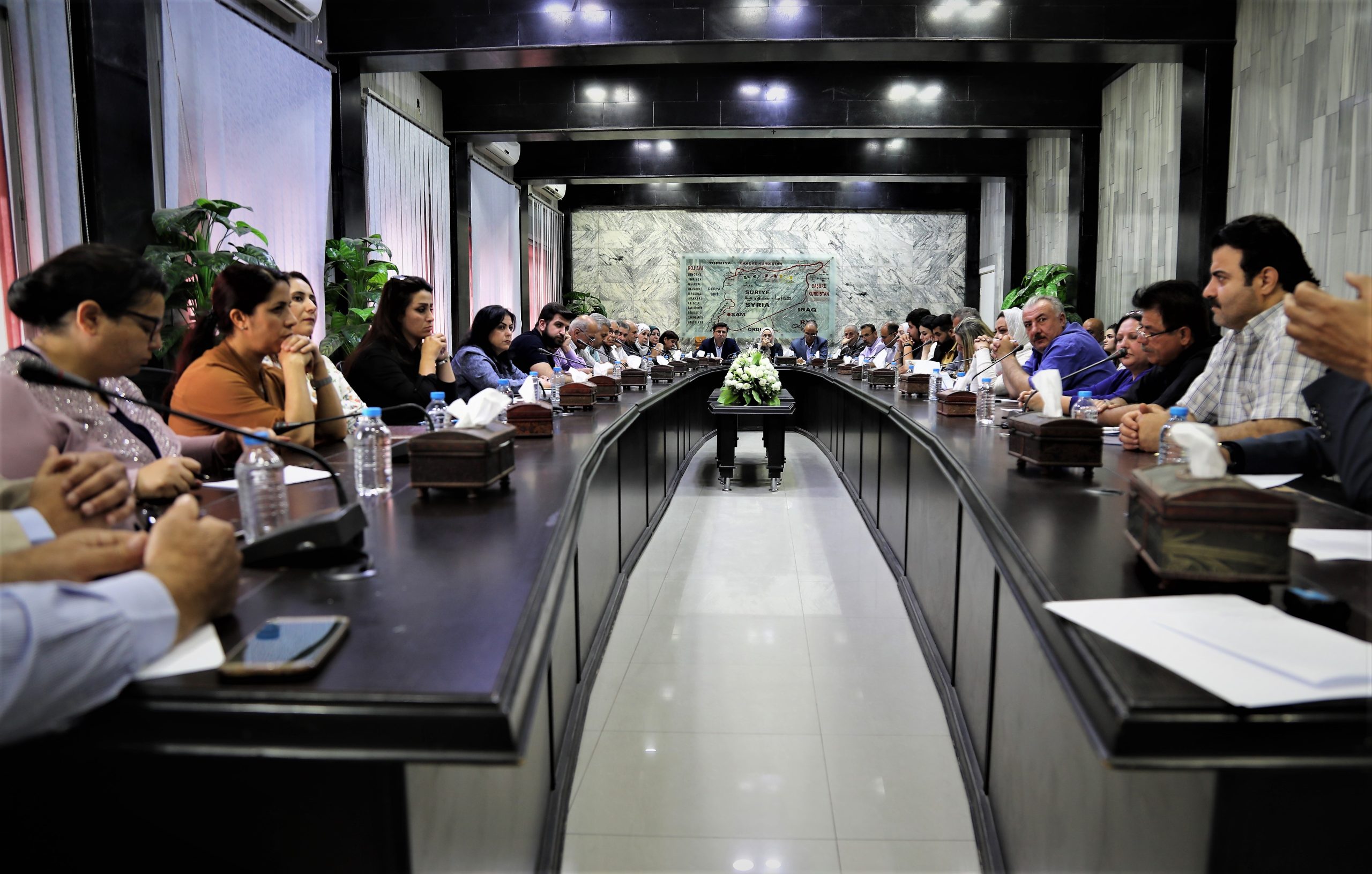 بحضور الرئيس المشترك للمجلس التنفيذي السيد ” طلعت يونس ” ومستشارة الإدارة الذاتية الديمقراطية لإقليم الجزيرة السيدة ” جيهان خليل ” والرئاسة المشتركة للمجلس التشريعي السيد ” حكمت حبيب ” والسيدة ” آريا ملا أحمد ” ونواب المجلس التشريعي بالإضافة الى رئاسة مقاطعتي قامشلو والحسكة وممثلين عن الأحزاب والقوى السياسية في المنطقة.