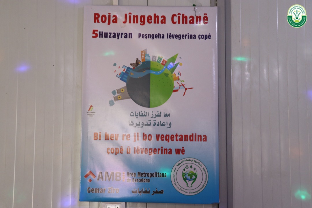 نظمت دائرة البيئة في مقاطعة الحسكة احتفالية بمناسبة قدوم 5 حزيران يوم البيئة العالمي تحت شعار ” معاً لفرز النفايات وإعادة تدويرها ” حيث قاموا بإطلاق عدة أنشطة بيئية تتحدث فيها عن البيئة وتاريخها وذلك في حديقة كاوا الواقعة في حي المفتي بمدينة الحسكة.