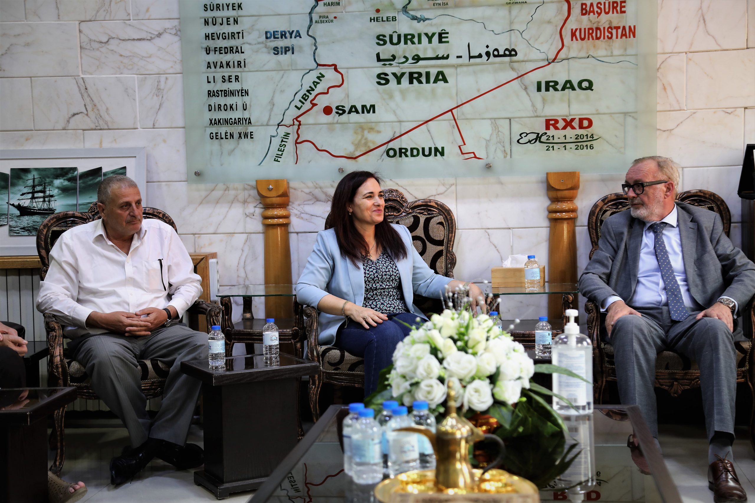 زار وفد من الخارجية البلجيكية برئاسة السفير ” هوبير كورمان ” المبعوث البلجيكي الخاص لسوريا وسفيرها في لبنان مقر المجلس التنفيذي لإقليم الجزيرة في مدينة عامودا، حيث أستقبل الوفد الرئيسة المشتركة للمجلس التنفيذي السيدة ” نظيرة كورية ” ونائبها السيد ” علي كعود ” ونائبة الرئاسة المشتركة للمجلس التشريعي السيدة ” إلهام مطلي ”