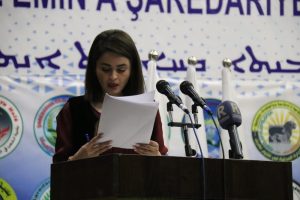 وتلا ذلك قراءة التقرير من قبل نائبة الرئاسة المشتركة لهيئة الإدارة المحلية والبيئة بيريفان عمر ، وبعد ذلك فتح باب النقاش للمشاركين.