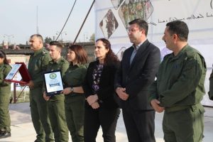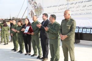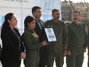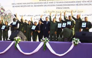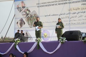 في نهاية الاحتفال كرمت الإدارة الذاتية الديمقراطية متمثلة بالرئاسة المشتركة للمجلس التنفيذي السيدة نظيرة كورية والسيد طلعت يونس كافة اقسام قوى الأمن الداخلي.