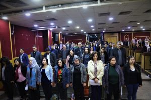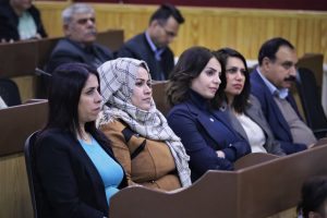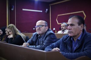 عقد المجلس التشريعي في إقليم الجزيرة صباح اليوم الخميس المصادف في 10/ 11/ 2022 جلسته الحادية عشر وذلك في قاعة المجلس التشريعي في مدينة عامودا حضر الجلسة الرئاسة المشتركة للمجلس التشريعي السيد ” حكمت حبيب ” والسيدة ” آريا ملا احمد ” ونواب الرئاسة المشتركة بالإضافة الى حضور مستشارة الإدارة الذاتية في إقليم الجزيرة السيدة ” جيهان خليل ” الرئاسة المشتركة لمجلس العدالة في إقليم الجزيرة السيدة “ولاء العلي “و رئيسة هيئة المرأة السيدة “أفين باشو” ونائبتها و الناطقة الرسمية لمؤتمر ستار السيدة” رمزية محمد” و الرئاسة المشتركة لهيئة التربية والتعليم كل من السيد “مصطفى محمد” و السيدة “روهات خليل ” ووفد من منسقية المرأة في إقليم الجزيرة والعديد من التنظيمات النسائية في إقليم الجزيرة و84 من اعضاء المجلس التشريعي.