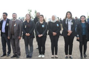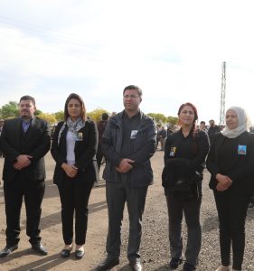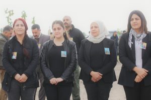 Şandeyek ji Rêveberiya Xweseriya Demokratîk a herêma Cizîrê tev li merasîma oxirkirina 11 şehîdan bû